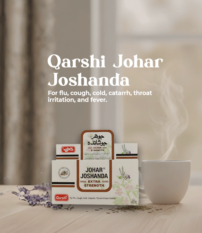 Suggested use: Mix the contents of Qarshi Johar Joshanda in a cup of hot water, tea or coffee and sip it while hot thrice a day.