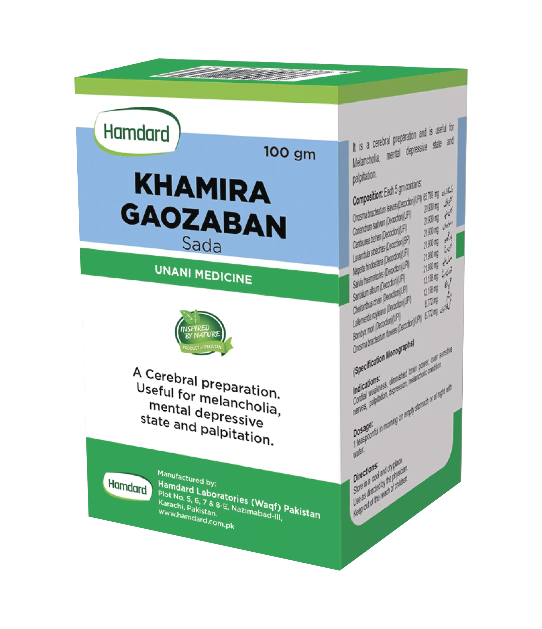 Hamdard Khamira Gaozaban Sada is a cerebral preparation and is useful for Melancholia, mental depressive state and palpitation.