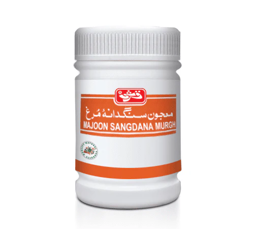 Majoon Sang Dana Murgh contains Sang Dana Murgh (Gizzard) which acts as stomach and intestinal tonic.