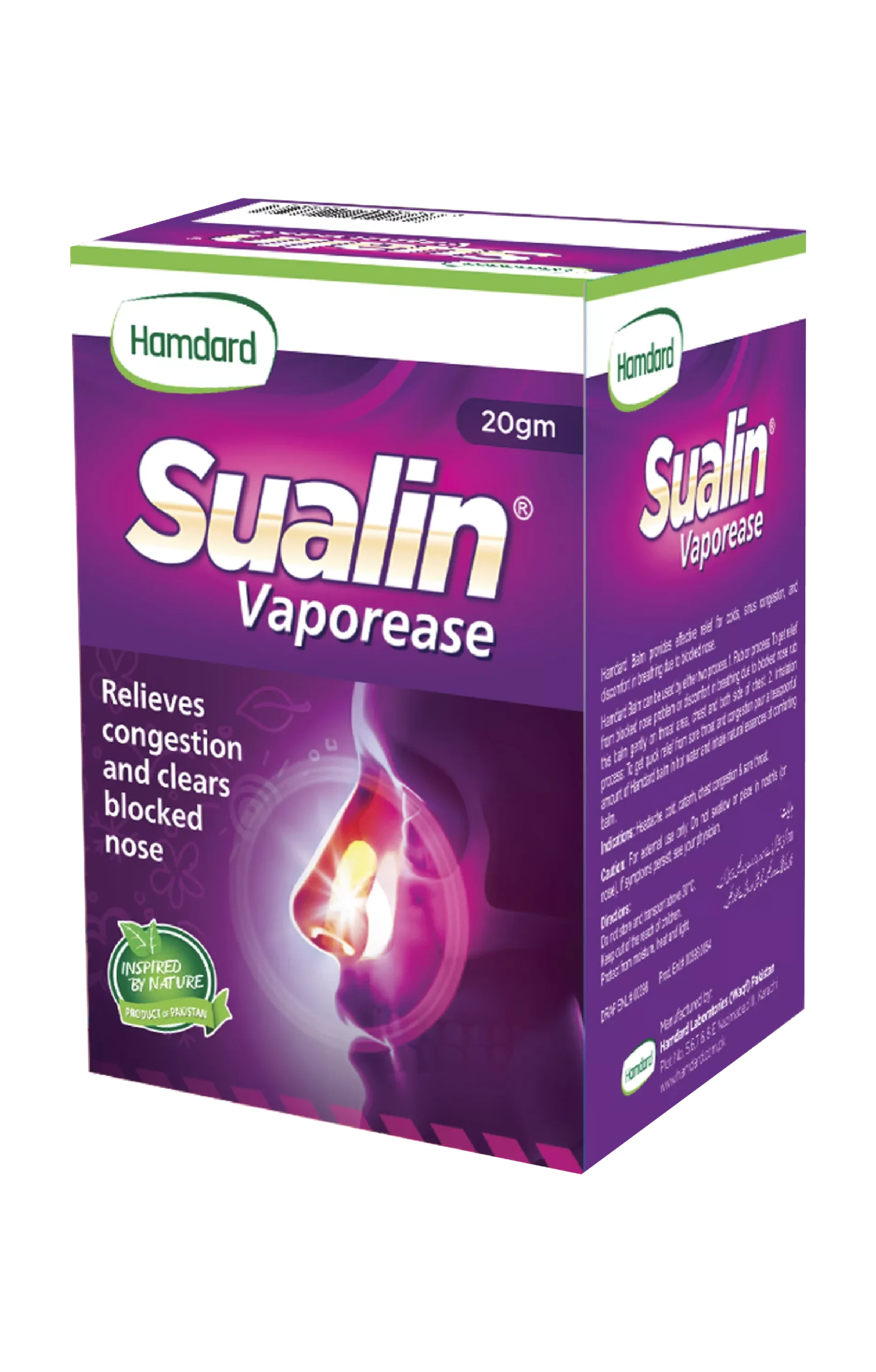 Powerful relief from blocked nose & congestion Sualin Vaporease is a mixture of essential plant oils for the relief of nasal and bronchial congestion. It provides ideal relief in colds, blocked sinuses and catarrh. It calms cough and eases sore throat for you to breathe easy.
