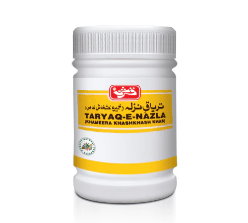Taryaq-e-Nazla is used as expectorant and plays important role in throat sores and cough. Sinusitis can be caused by infection, but can also be caused by allergy and irritation of the sinuses. A sinus infection occurs when a pathogenic microorganism (virus, bacterium, or a fungus) grows within a sinus. The sinus openings may be blocked by swelling of the tissue lining and adjacent nasal passage tissue due to common cold, allergy and tissue irritants. Taryaq-e-nazla is effective in acute catarrh, sinusitis and related complications.